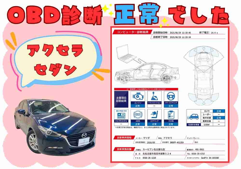 080074アクセラ記録簿・OBD故障診断