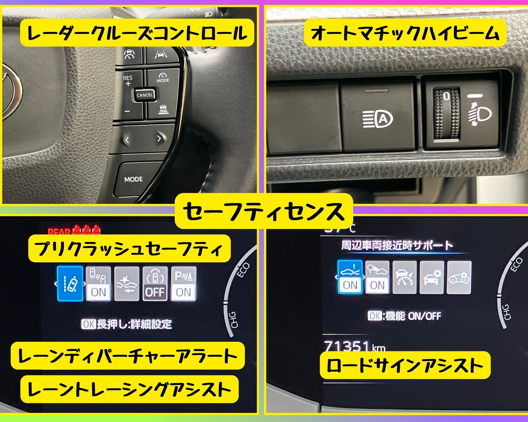 ➡ レーンディパーチャーアラートではみ出しを防止。⏱ レーダークルーズでロングドライブも快適。? 毎日の運転に安心とゆとりをプラスします。