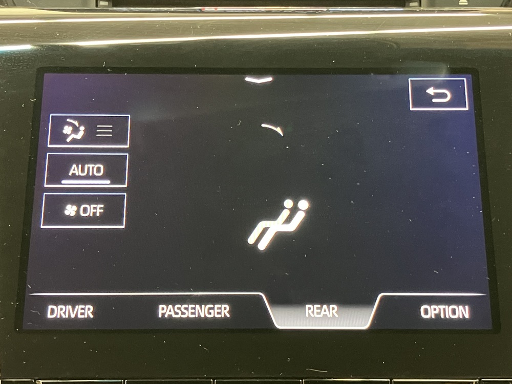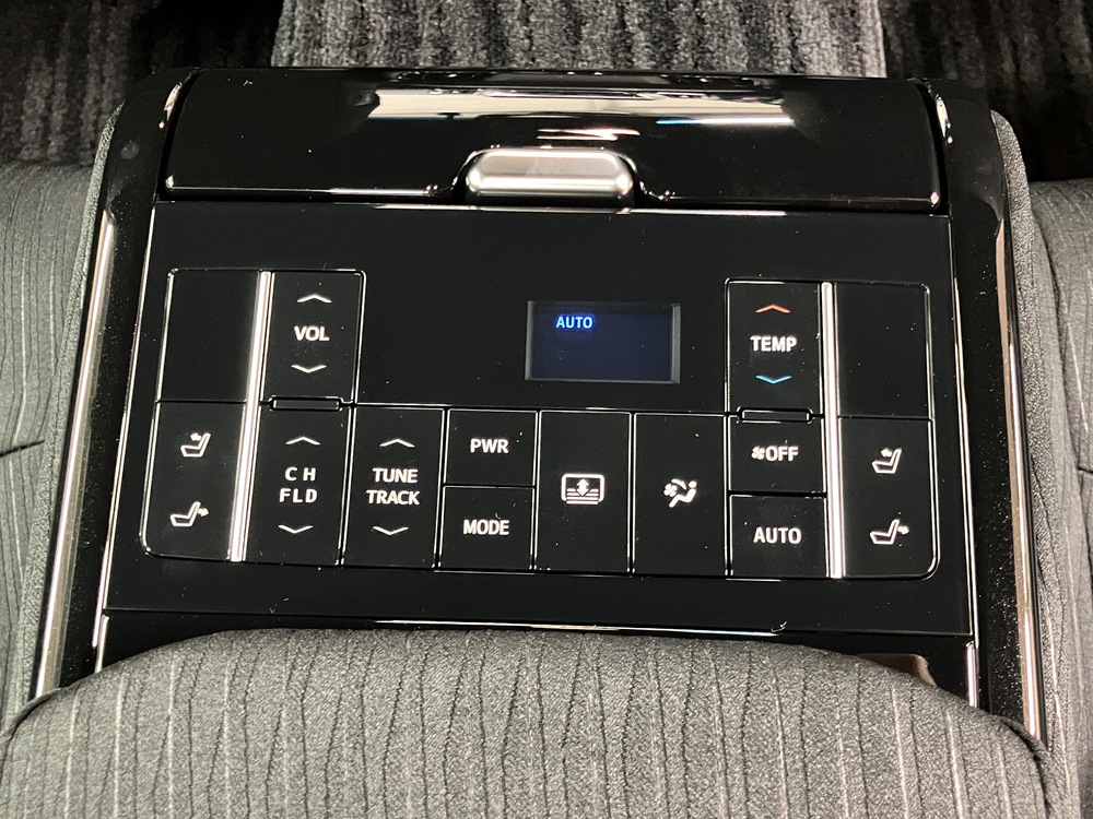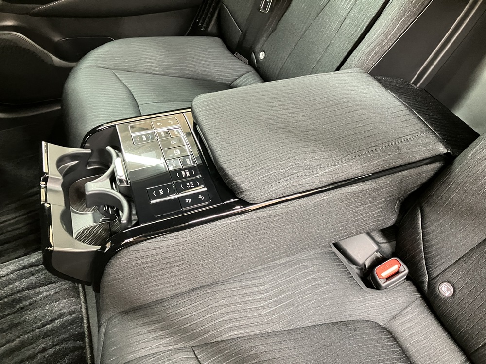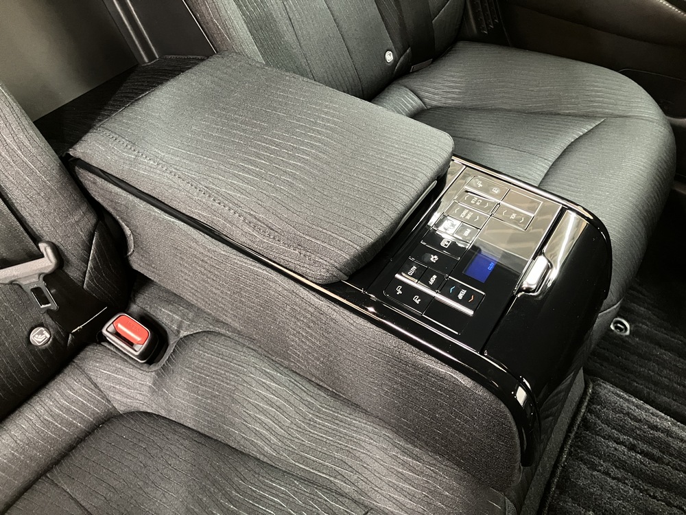 後席の快適性を高める贅沢な装備セット。電動サンシェードやエアコン操作で上質なくつろぎを実現。