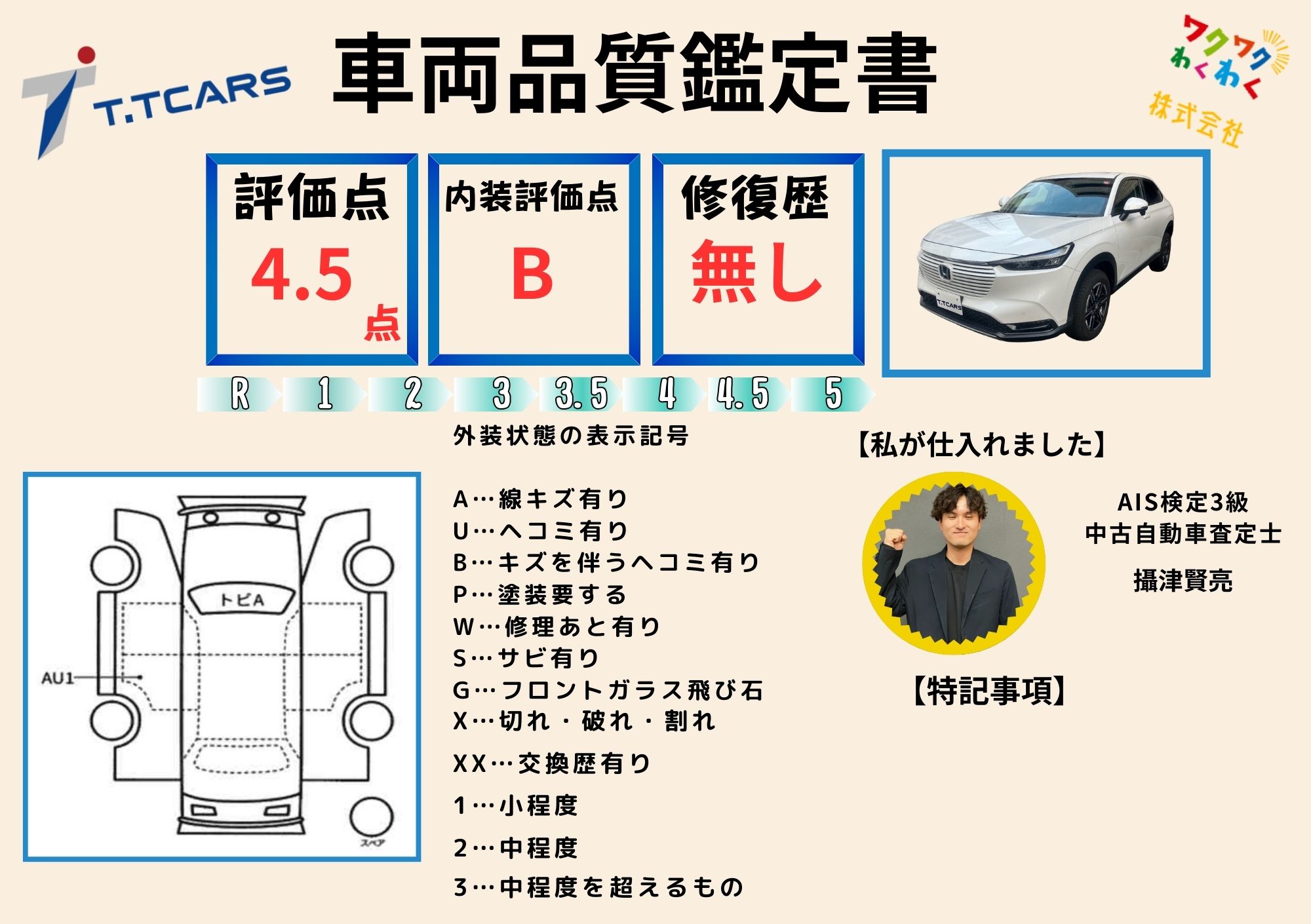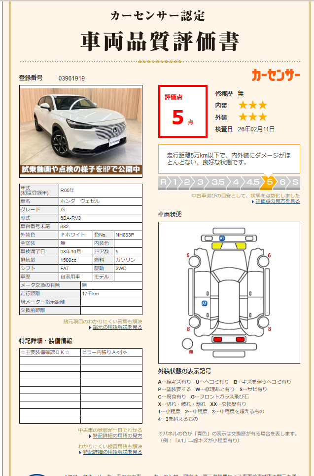 修復歴なし|第三者+自社評価