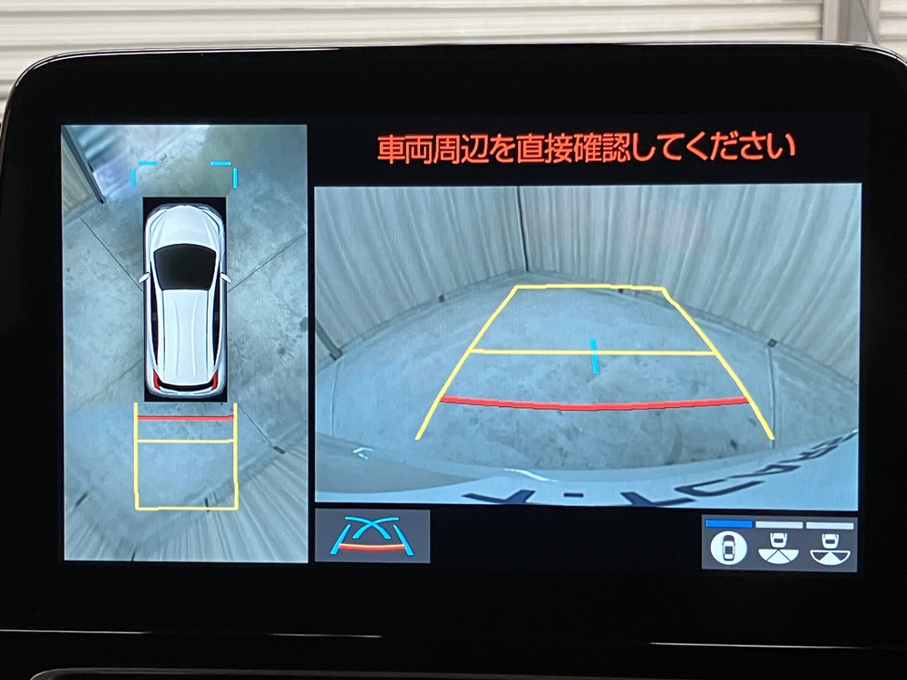 車を真上から見下ろしたような映像で車の周囲が一目でわかるパノラミックビューモニター✨前後左右の距離感がつかみやすくて安心です👍