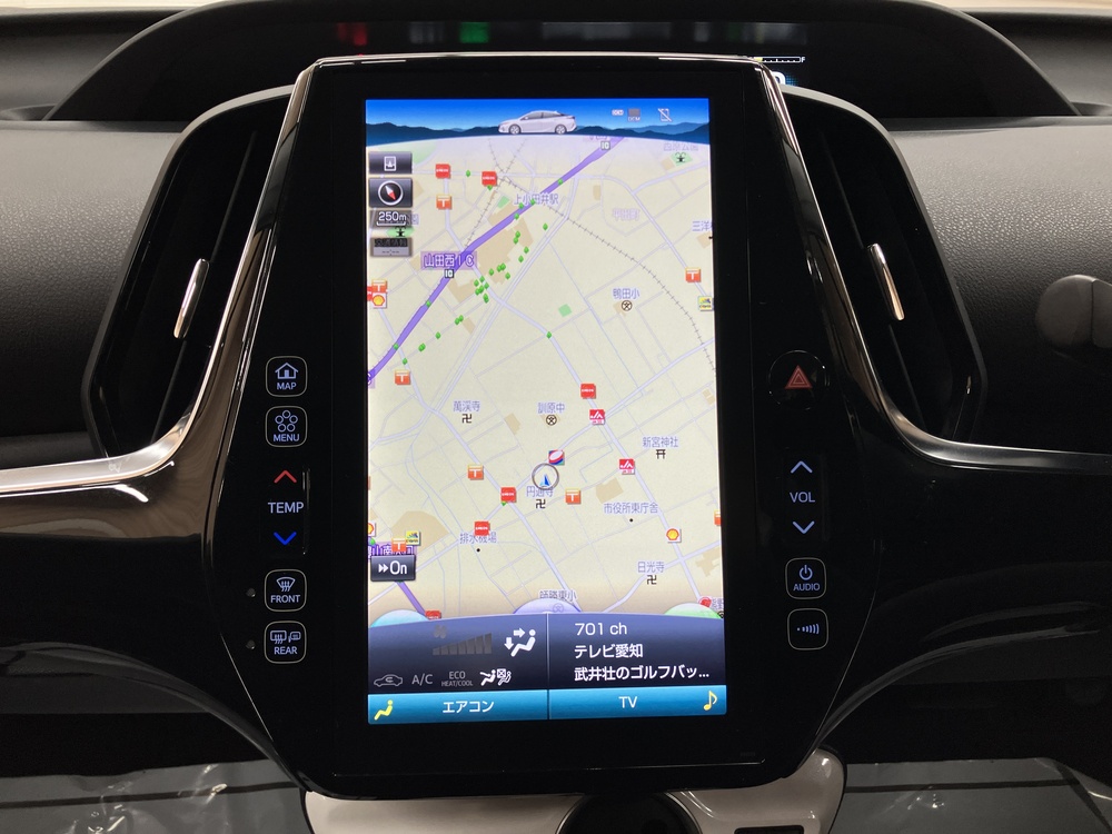- 未来感のある大型ナビ(縦型ディスプレイ)が好評